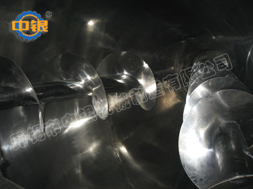 雙螺旋錐形混合機的攪拌部件為兩條不對稱懸臂螺旋,長短各一,它們在繞自己的軸線轉動(自轉)的同時,還環(huán)繞錐形容器的中心軸;借助轉臂的回轉在錐體壁面附近又作行星動(公轉);該設備通過螺旋的公、自轉使物料反復提升,在錐體內產(chǎn)生剪切、對流、擴散等復合運動,從而達到混合的目的。產(chǎn)品可根據(jù)要求設計外夾套(加熱、冷卻),噴霧器,廣泛應用于化工、醫(yī)藥、農(nóng)藥、染料、建材等粉體與粉體的混合、反應。 該機根據(jù)工藝要求可在混合機筒體外增加夾套,通過向夾套內注入冷熱介質來實現(xiàn)對物料的冷卻或加熱;冷卻一般泵入工業(yè)用水,加熱可通入蒸汽或電加熱導熱油。