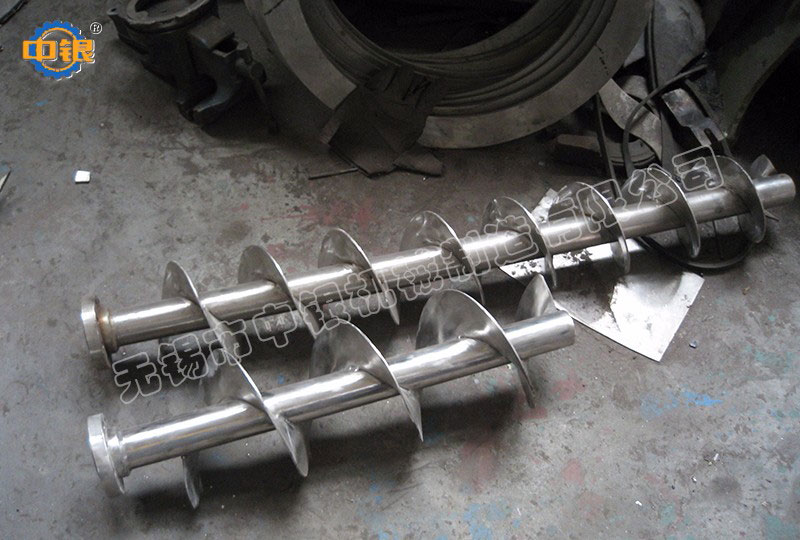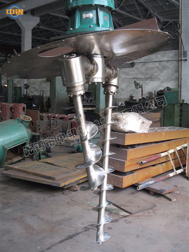 雙螺旋錐形混合機筒內兩只非對稱螺旋自轉將物料向上提升,轉臂慢速公轉運動;使螺旋外的物料,不同程度進入螺柱,從而達到全圓周方位物料的不斷更新擴散,被提到上部的兩股物料再向中心凹穴匯合,形成一股向下的物料流,補充了底部的空缺,從而形成對流循環(huán)的三重混合效果;標準型錐形螺旋混合機有兩根攪拌螺旋,實際應用中根據(jù)設備規(guī)格大小可以采用單(一根長螺旋)、雙(長短各一兩根不對稱螺旋)、三(兩短一長對稱布置)根螺旋;理論上攪拌螺旋越多,混合效果越好;設備一般采用梅花狀“錯位閥”,此閥與長螺旋底部貼合緊密,有效減少混合死角,驅動形式有手動和氣動可選;根據(jù)用戶需要,也可加裝蝶閥、球閥、星形卸料器、邊出料等。
